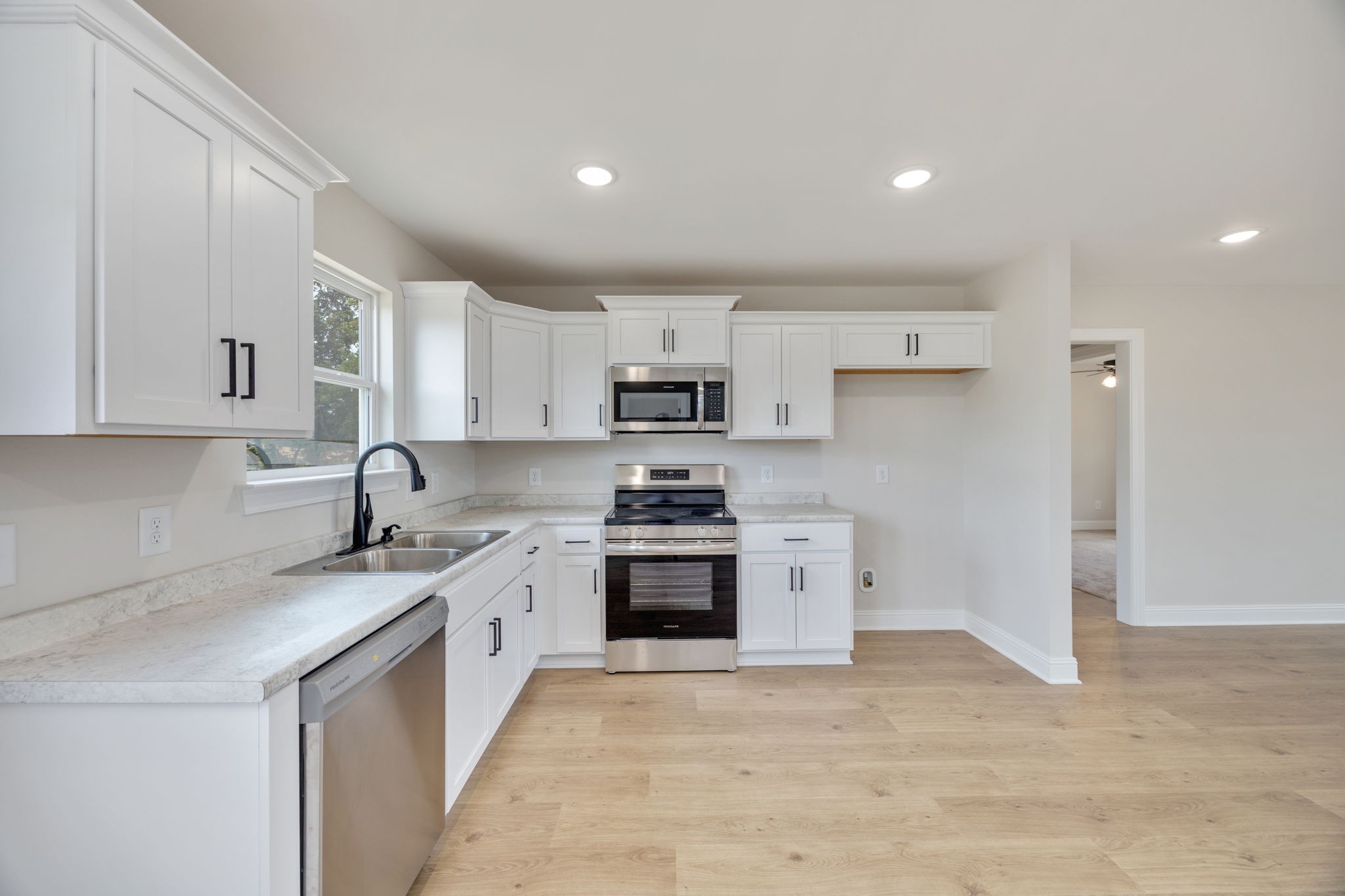 - Floors: Carpet, Laminate, Tile