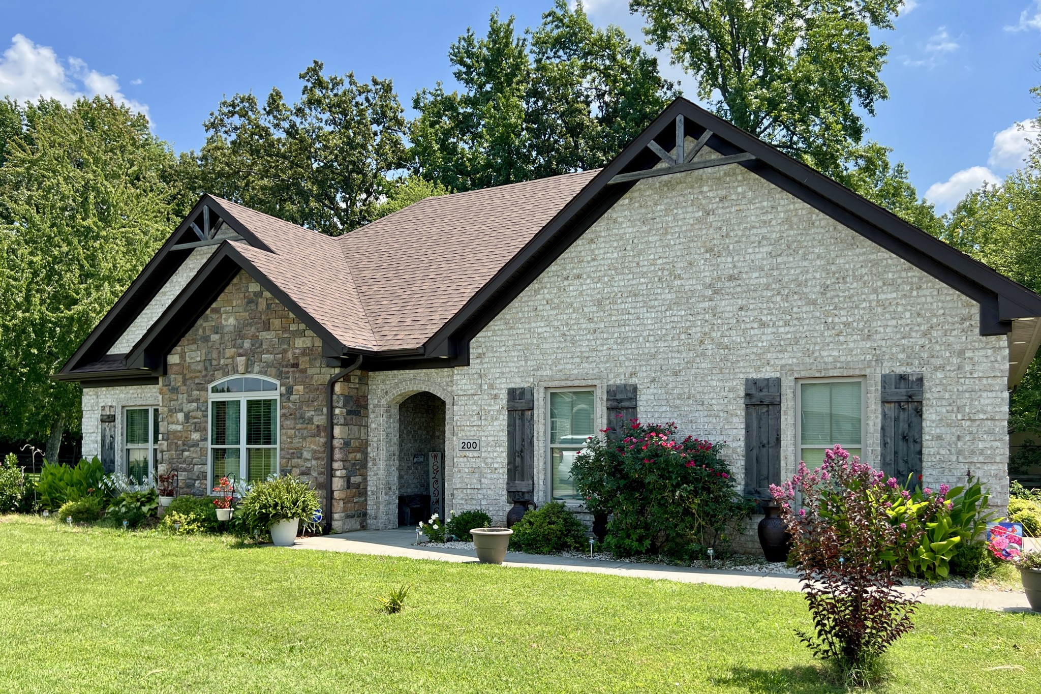 Welcome to 200 Poplar Street, a home with tasteful design choices, modern convenience, and timeless appeal. Featuring an attractive brick and stone exterior, this 3- bedroom, 2- bath home sits on a large lot with partial fencing and a private patio for outdoor relaxation or entertaining. Step inside to find a kitchen that impresses with granite countertops, aesthetic tile and practical cabinetry that extend to the ceiling, and a walk- in pantry. Both bathrooms feature granite countertops, with the primary bath offering a luxurious walk- in granite shower and separate soaking tub. Built on a slab foundation with only a small step from the garage into the home, this property provides ease of access and low maintenance living. With its ideal location in Franklin close to local schools, shopping, medical facilities, and more, this home is a must- see. Call today to schedule your private showing!