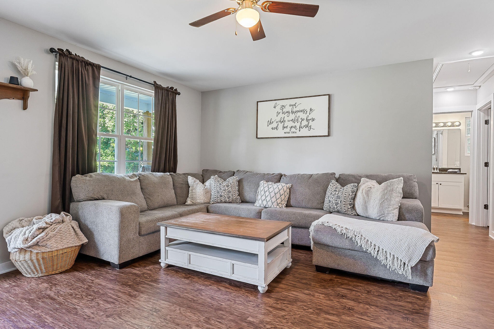 Step inside to find a bright and inviting living area, a spacious kitchen, and a dining area ideal for gatherings. The primary suite includes its own bath for added privacy, while two additional bedrooms provide flexibility for guests, a home office, or children.